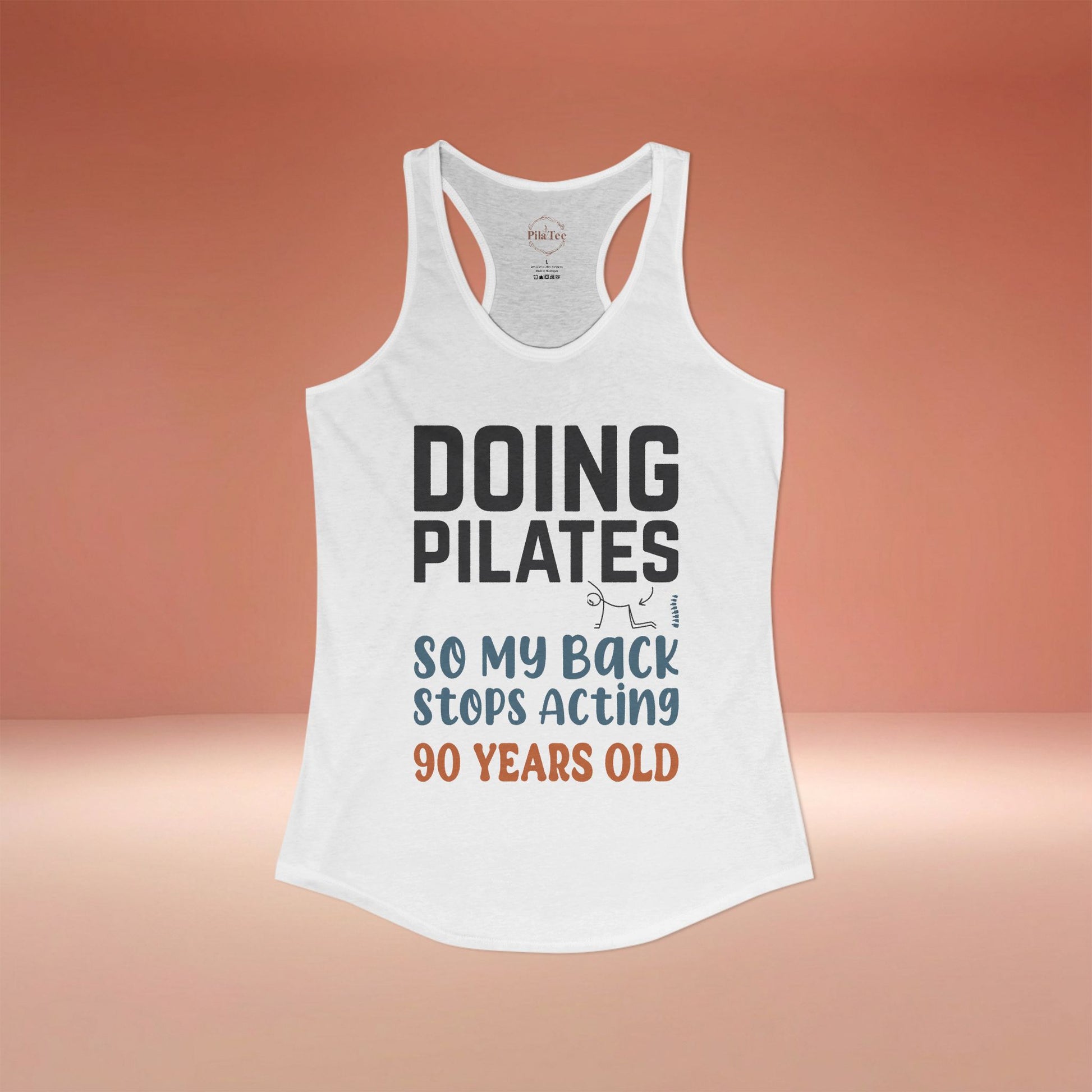 Give your back a little love with the “Doing Pilates so my back stops acting 90 years old” racerback, created for anyone who jokes through their aches. Soft, flexible fabric moves with you, and the flattering cut makes it easy to wear in and out of class. The design stays clear through every stretch.