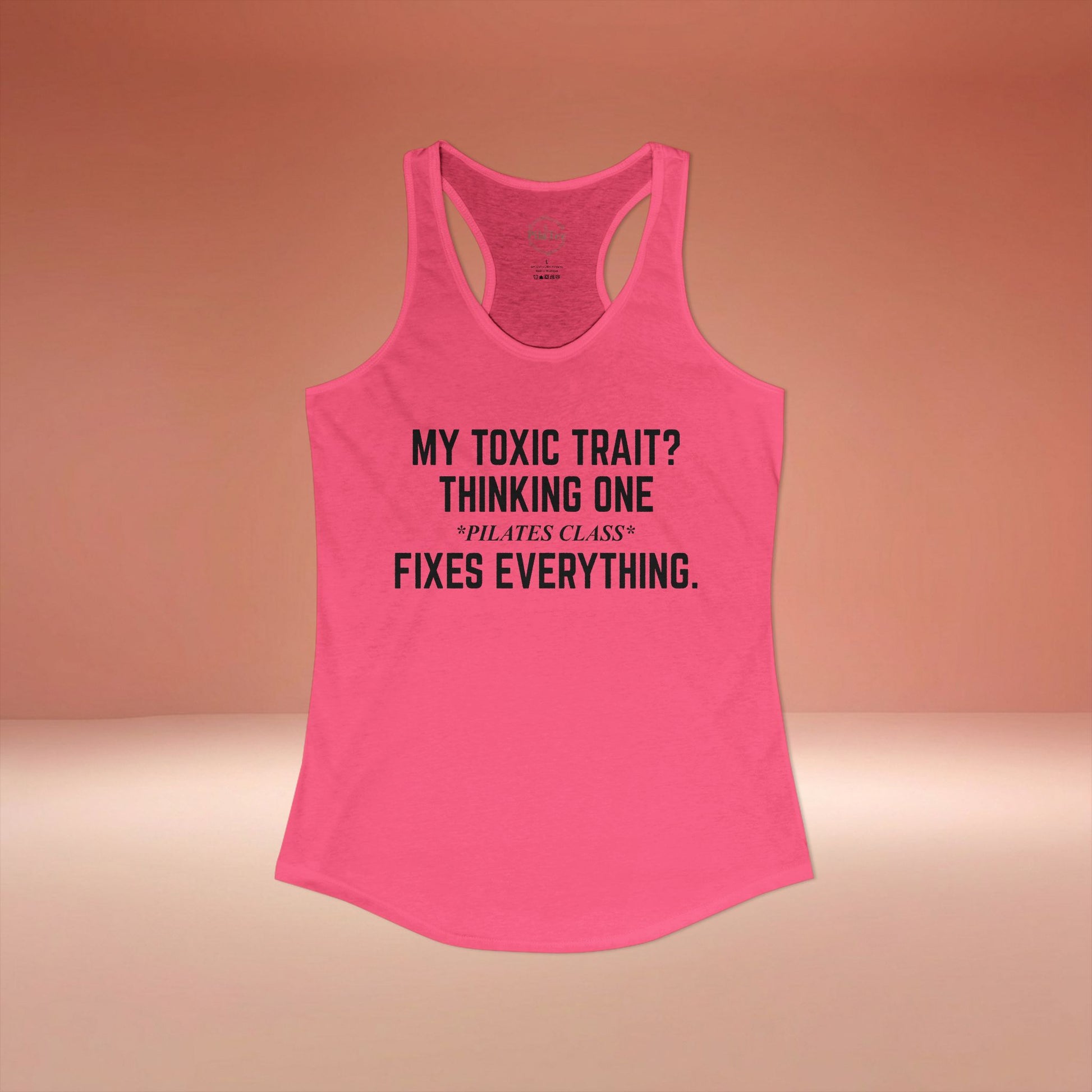 Embrace the chaos with the “My toxic trait? Thinking one Pilates class fixes everything” racerback, perfect for girlies who believe a good stretch solves half of life. Soft and easy to wear, it transitions smoothly from workouts to errands. The design stays fresh wear after wear.