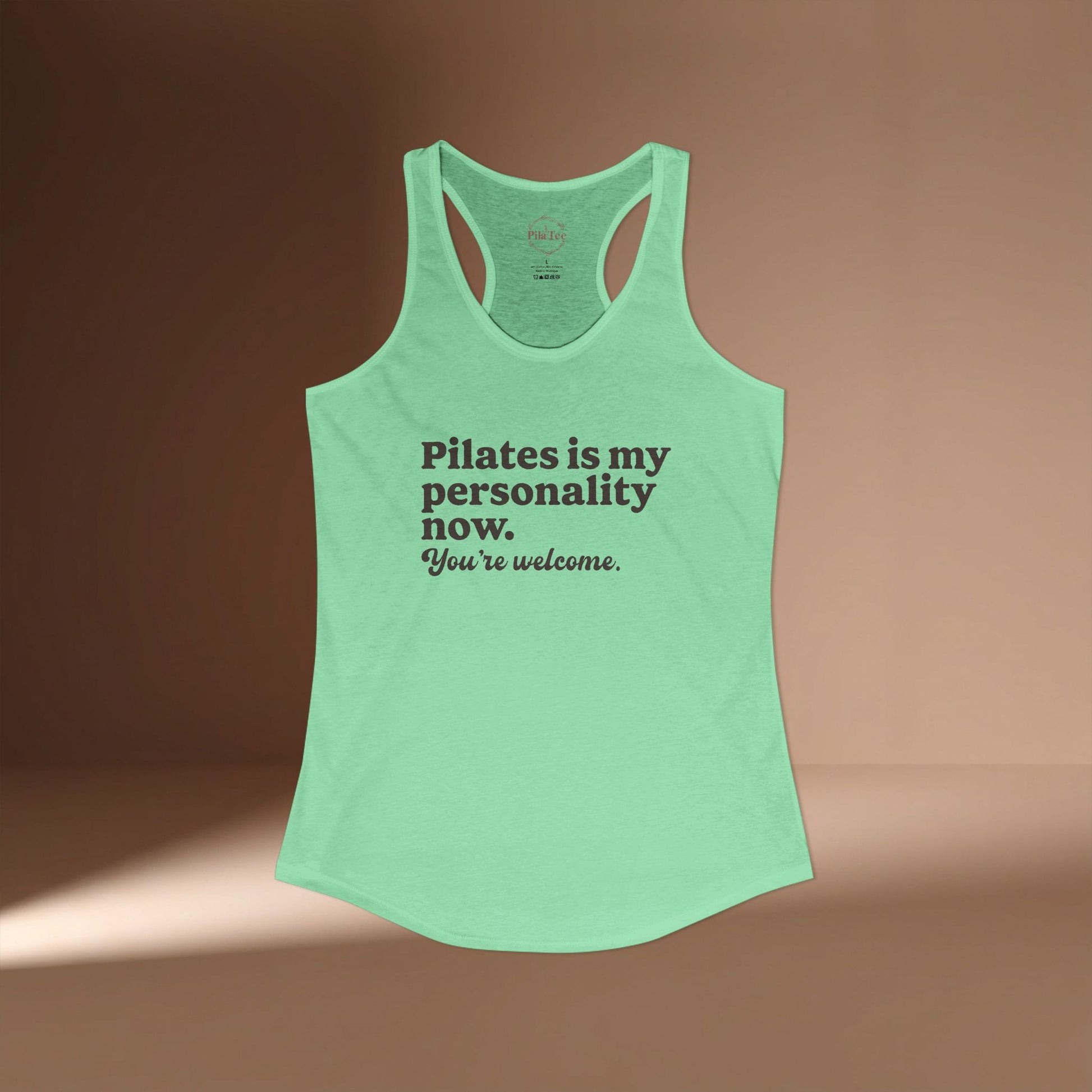 Show off your Pilates pride with the “Pilates is my personality now. You’re welcome.” racerback, crafted for the girl who fully lives her mat life. The soft fabric and flattering cut make it a closet staple. The durable print keeps your new persona looking crisp.