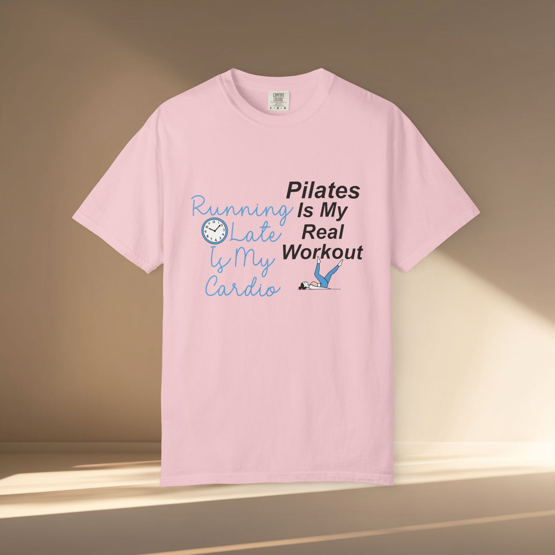 Embrace the chaos in style with the “Running late is my cardio, Pilates is my real workout” t-shirt, designed for the girl who’s always moving but still makes it cute. The airy feel keeps it comfortable, and the design stays clean through every rushed moment.